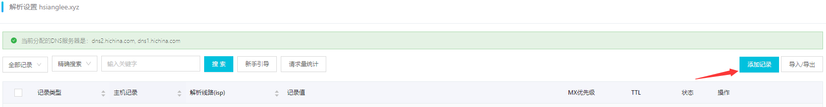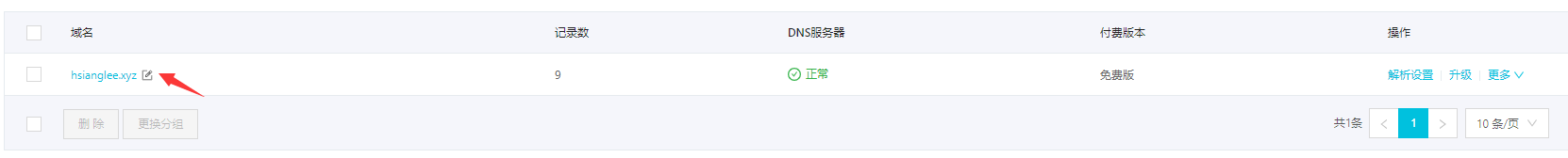 - 进入阿里云域名解析,可以看到当前购买的域名
