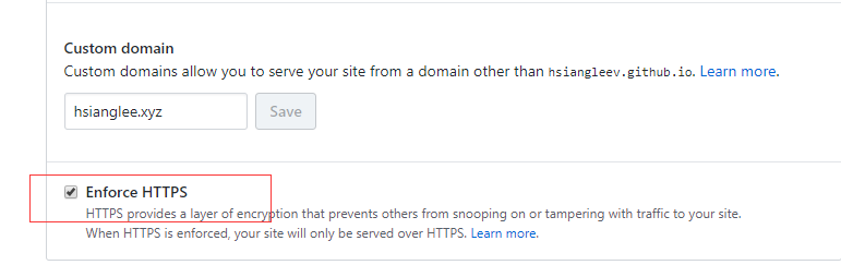 - 到github的博客设置里面把Enforce HTTPS 前面的checkbox选中