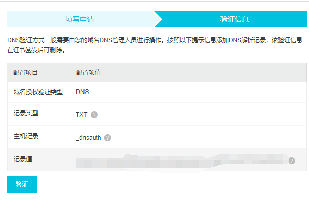 点击验证之后会自动添加一条域名解析记录,然后点击下面的提交审核。- 审核完成之后会提示为已签发