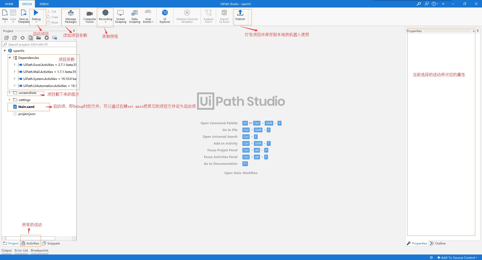 在start的右边new process下面的process,选择项目名称和路径就可以创建了项目了,编辑器对应的功能如下图