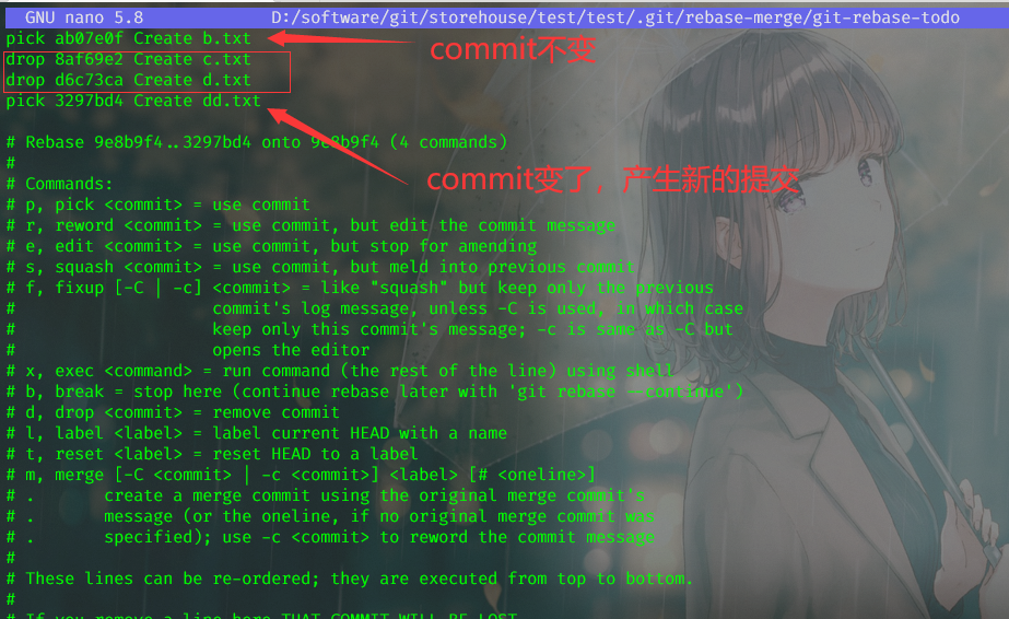 - drop之后的会修改commitId,则该修改也会变,即会产生提交